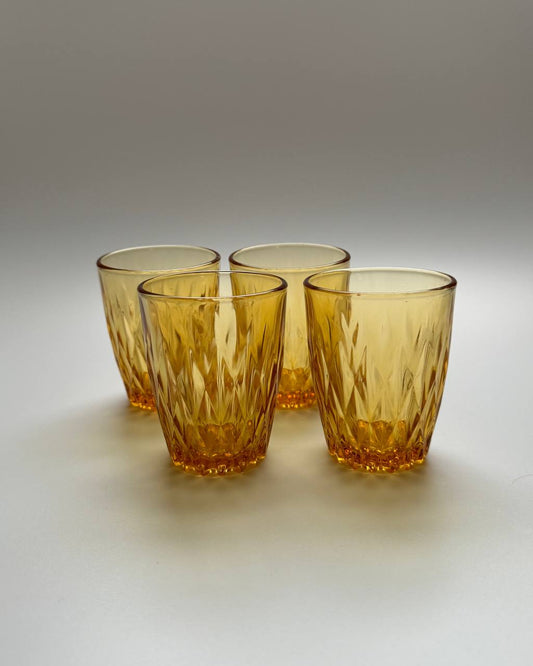 Set of 3 Vintage Amber Glass Tumblers - Retro Textured Design
