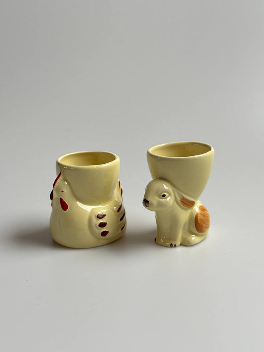 Set of 2 Vintage Egg Cup Holders – Hen and Rabbit Design