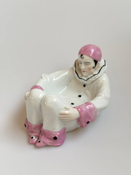 Antique Sitzendorf Germany Pierrot Porcelain Art Deco Trinket Dish - Rare Collectible