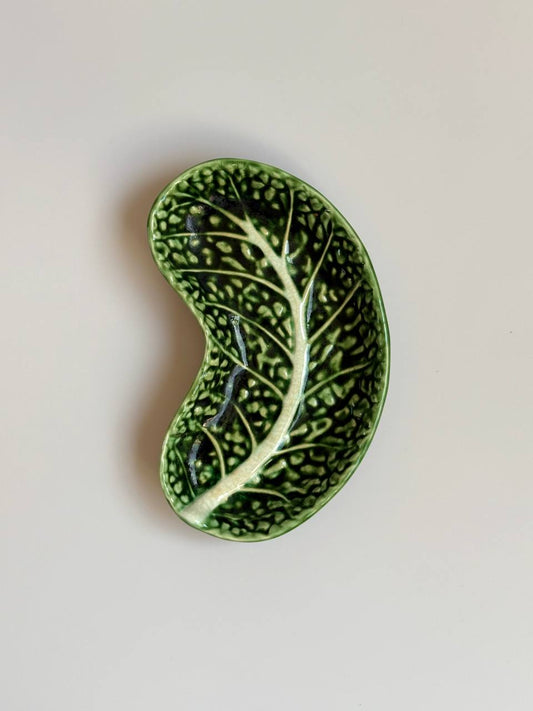 Vintage Portuguese Majolica Cabbage Leaf Kidney-Shaped Dish by Subtil