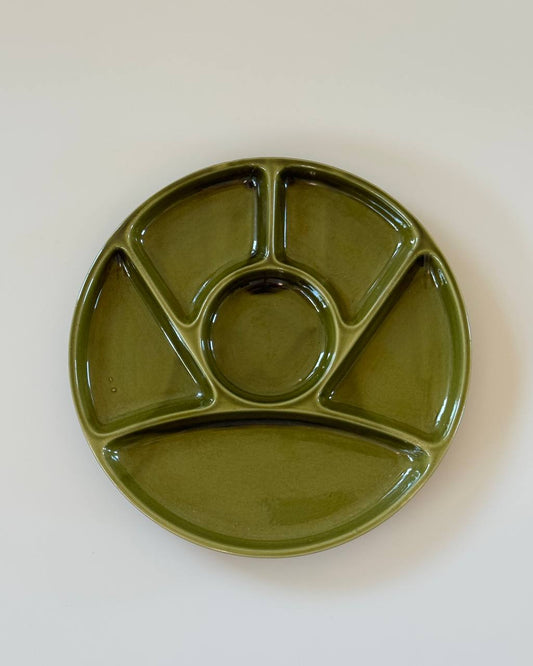 Vintage Japanese Green Glazed Ceramic Divided Plate