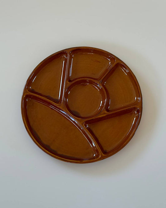 Vintage Japanese Amber Glazed Ceramic Divided Plate