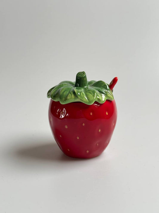 Vintage Ceramic Strawberry Pot with Lid and Spoon