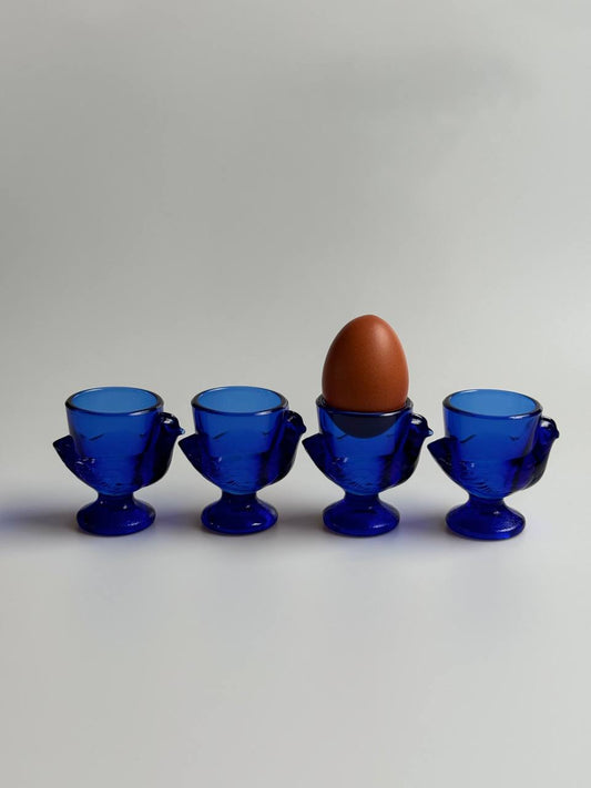 Vintage French Cobalt Blue Chicken-Shaped Glass Egg Cups