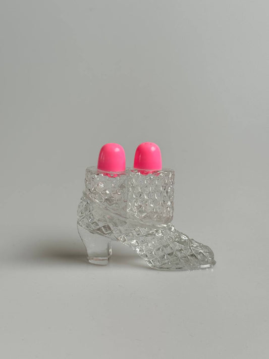 Rare Vintage Collectible Crystal Glass Slipper Salt and Pepper Shakers in Shoe