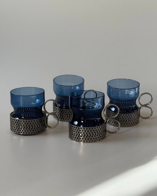 Rare Vintage Iittala Tsaikka Blue Glass Tea Cups by Timo Sarpaneva