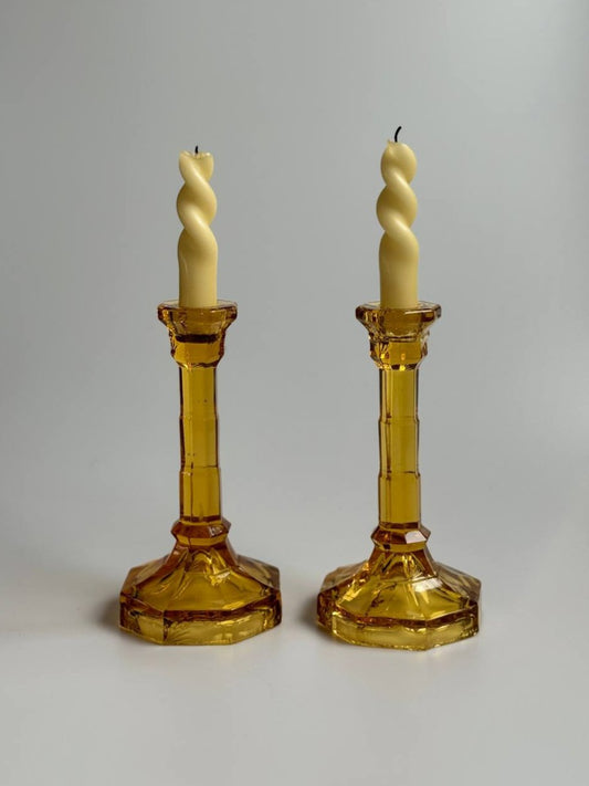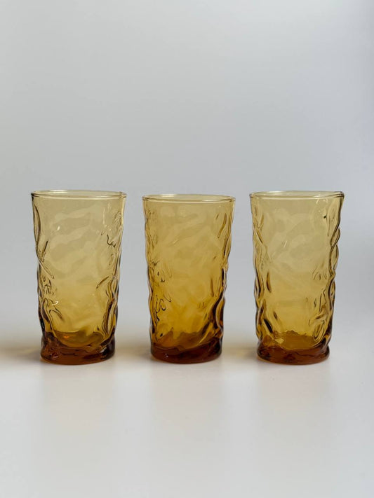Set of 3 Vintage Amber Glass Tumblers - Retro Textured Design