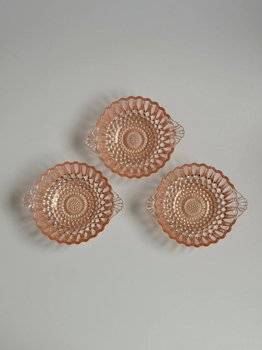 Vintage Pink Glass Dessert Bowls - Art Deco Depression Glass