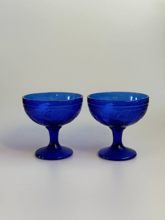 Vintage French Luminarc Cobalt Blue Glass Set (Set of 2)