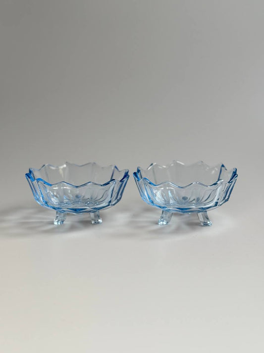 Vintage Pair of Blue Depression Glass Trinket Bowls