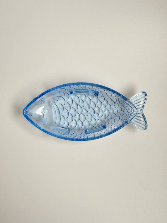 Vintage Retro Blue Glass Fish-Shaped Trinket Dish