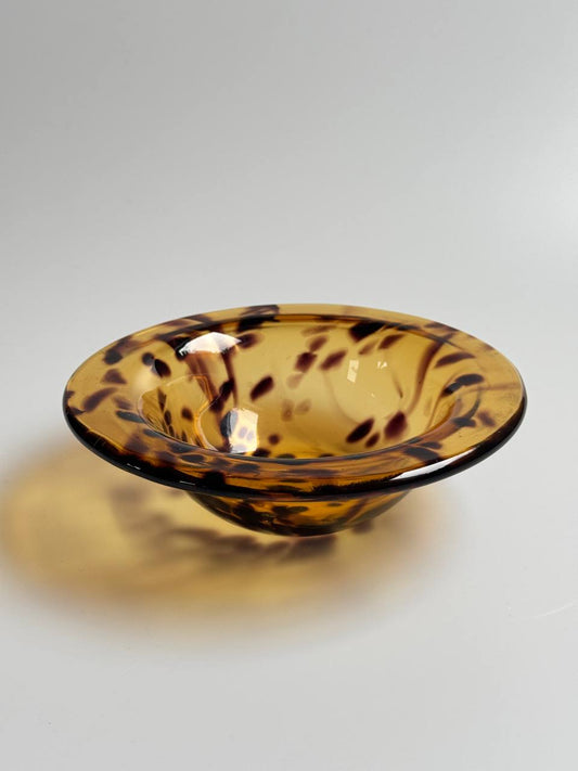 Vintage Hand-Blown Amber Tortoise Shell Art Glass Bowl