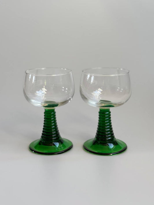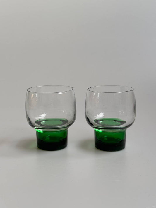 Set of 2 Vintage Luminarc France Green Glasses – 1970s Retro Design