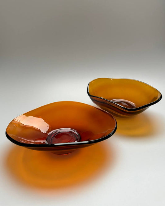 Vintage Mid-Century Amber Glass Trinket Dishes - Set of 2 (1970s)