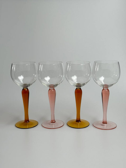 Vintage Harlequin Wine Glasses with Colorful Stems
