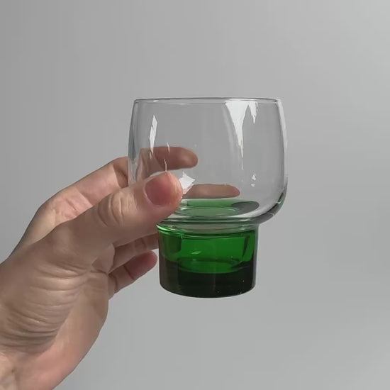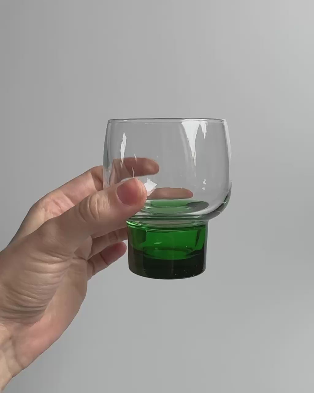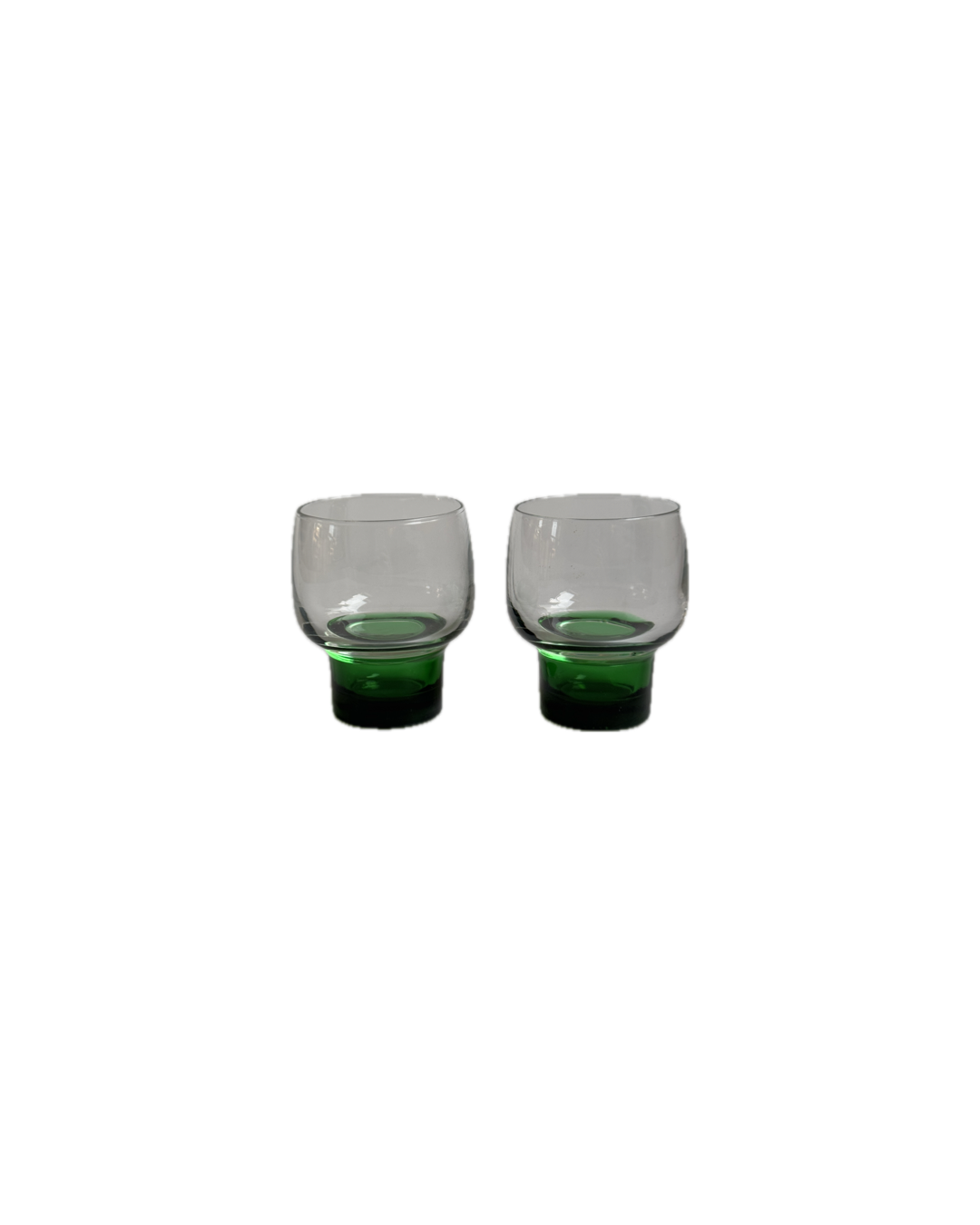 Set of 2 very rare vintage Luminarc France green-based glasses, perfect for adding a retro touch to your home. Designed with a timeless 1970s to 1980s aesthetic, these glasses are ideal for serving whisky, liqueurs, sherry, or any other favorite drink.