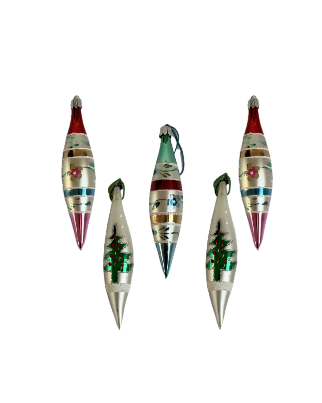 • Details: Includes five long baubles with hand-painted festive patterns, each one unique and full of character.